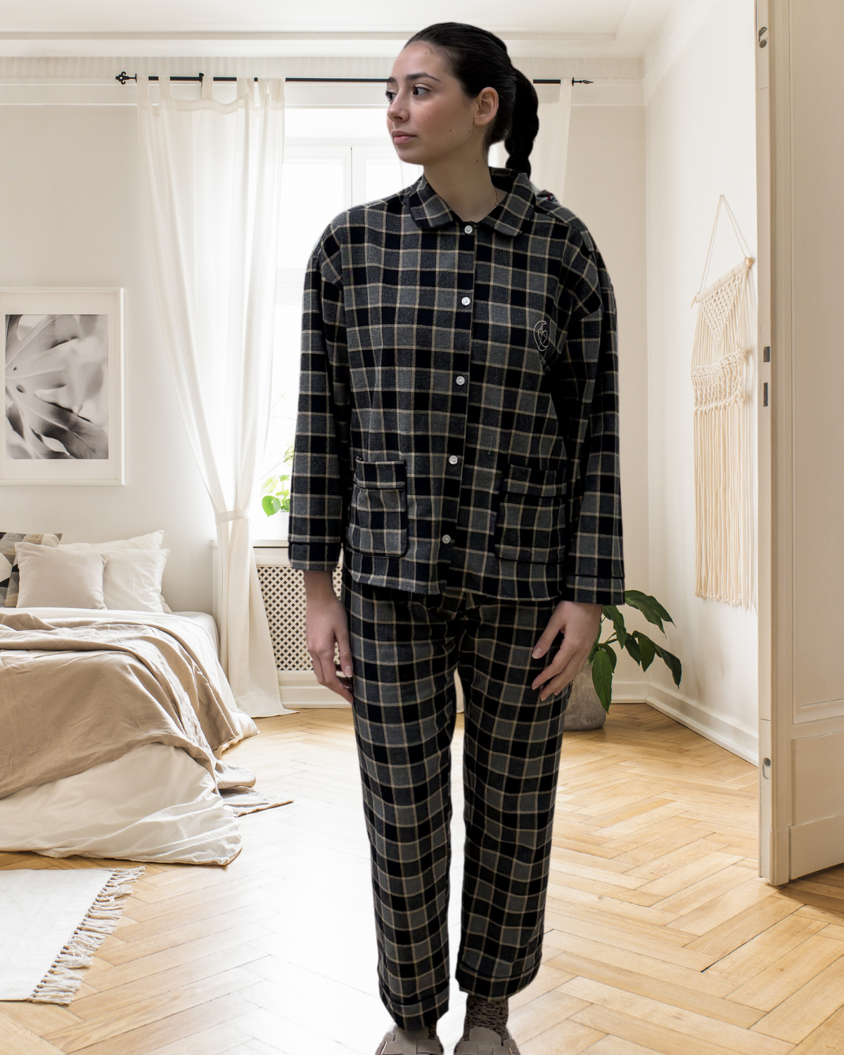 Pyjama long femme à carreau